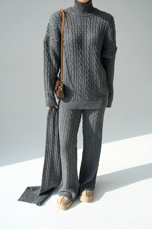 Kadın Antrasit Atkılı Saç Örgülü Premium Pamuklu 3'lü Takım