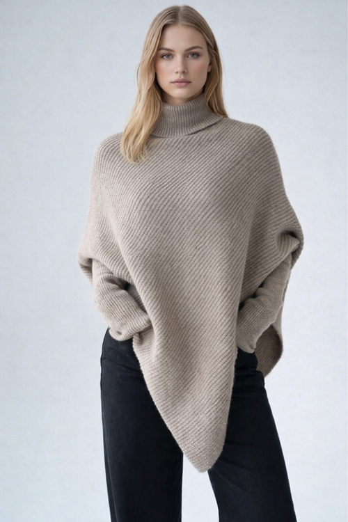 Balıkçı Yaka Asimetrik Kesim Kazak